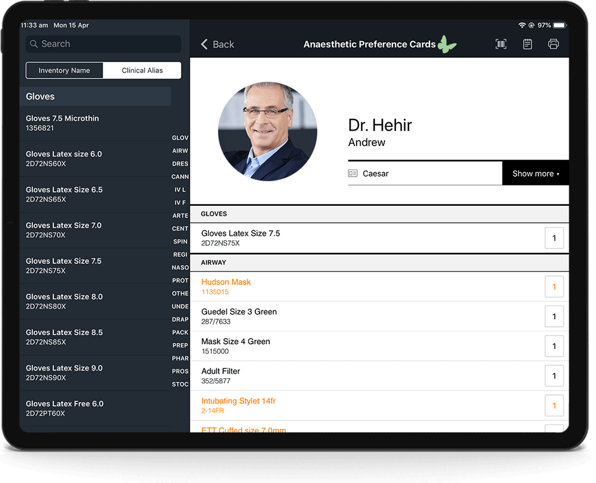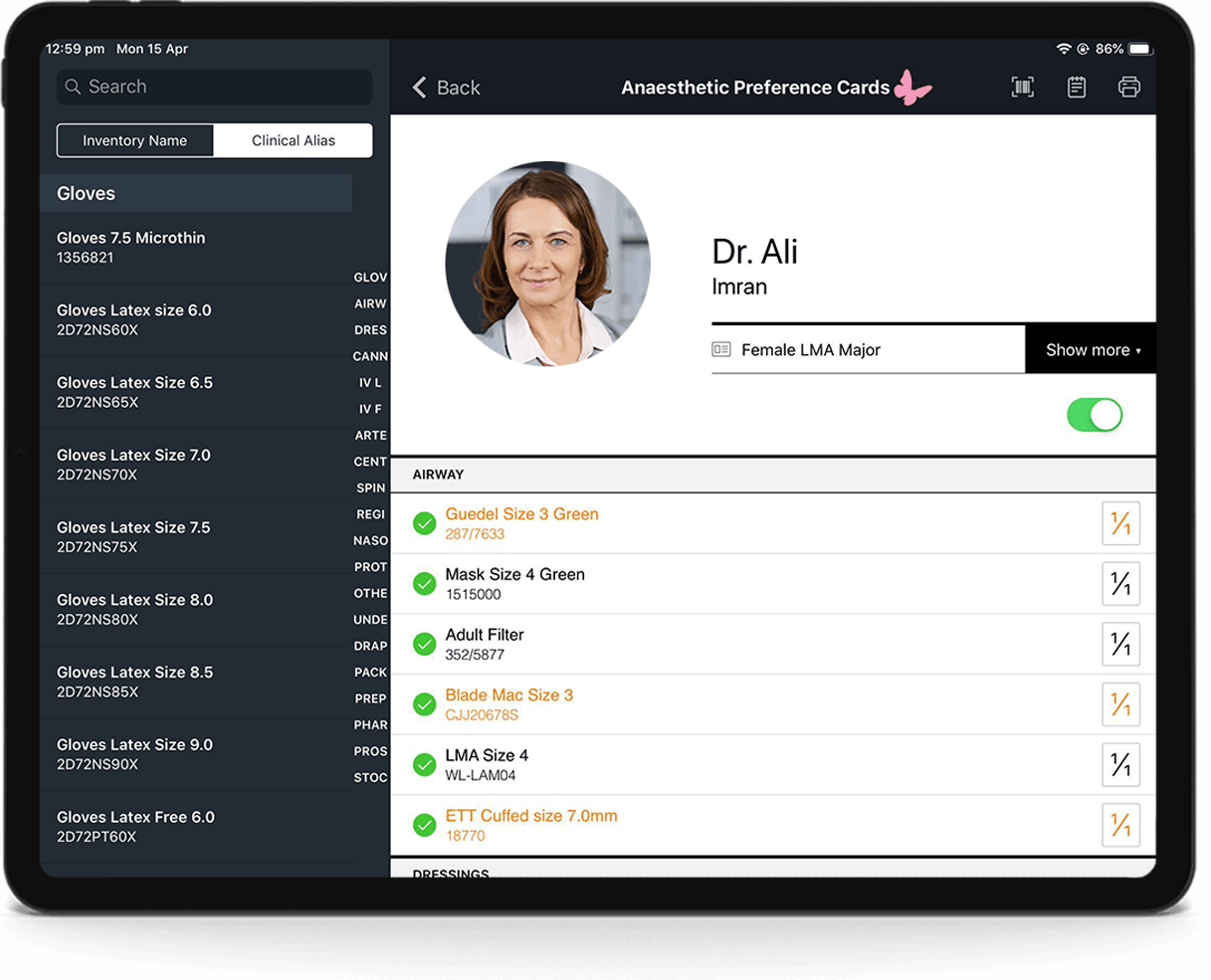 Managing Anaesthetic Preference Cards & Setups