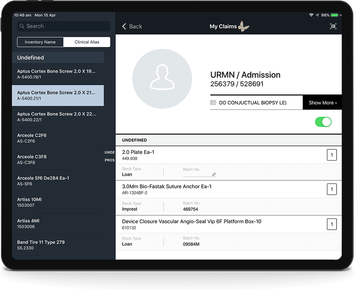 MyClaim is specially designed for surgical facilities to manage rebate items seamlessly with Patient Administration Systems and accounting systems. Hospital inventory can be grouped as consignment, loan, imprest and non-imprest items; each stock type can be processed in a unique workflow. An automated workflow can achieve time saving and accuracy with all the surgical claims.